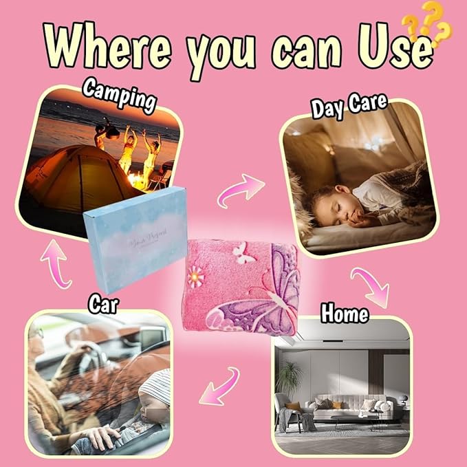 - Versatile & Multi-Purpose Use – This glowing butterfly blanket can be used as a bed throw, sofa blanket, nap blanket for school, stroller cover, or car seat blanket. Perfect for both warm and cold nights, it’s a magical companion for sleep, travel, and relaxation.