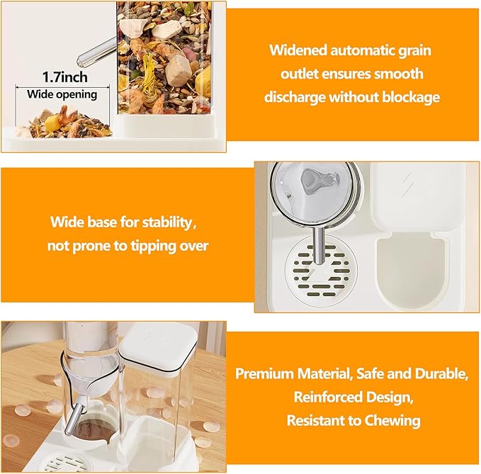 2-in-1 Hamster Water Bottle & Enhanced Food Dispenser - 35% Larger Food Capacity, Leak-Proof Design for Glass Tanks/Wire Cages Small Animal Accessories (White, 4.9IN+5.1IN+5.7)