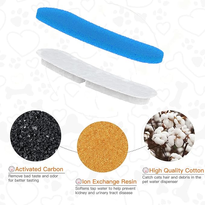 - 【Purer Than Ever】Our cat drinking fountain features a 5-stage filtration system,can removes heavy metals, dirt, and other harmful substances to provide fresh, clean water. To maintain your pet's health, recommend to change the filters and clean the pump and water fountain every three to four weeks.