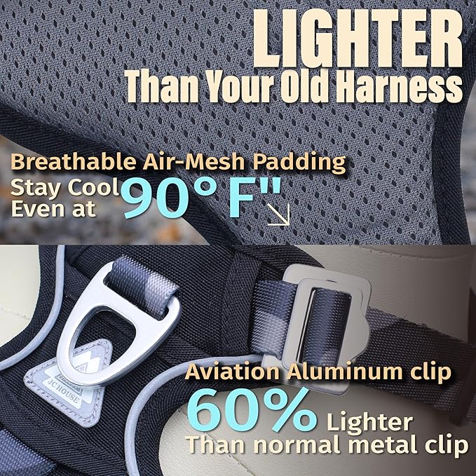 - ULTRA-LIGHT & BREATHABLE – MADE FOR ACTIVE ADVENTURES: Aviation-Grade Aluminum D-Rings & Nesting Buckle - Aviation aluminum D-rings & buckles: 60% lighter than steel with enhanced durability. Breathable Mesh Lining: Lightweight padding with air-mesh technology keeps your dog cool and comfortable, even in 90°F weather.