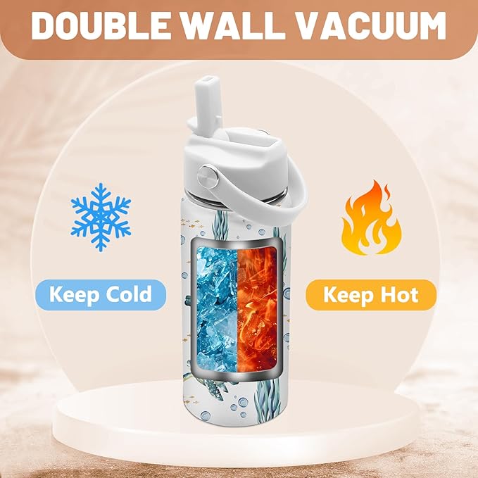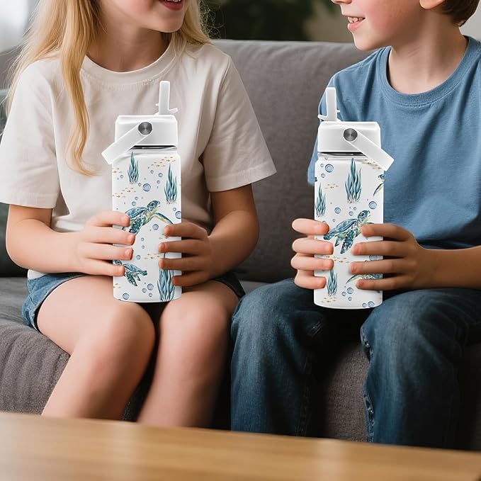 - Vacuum Insulation: The sea turtle insulated water bottle has double-wall vacuum insulation design, keeping both hot and cold beverages at the desired temperature for extended periods. Enjoy your drink at your favorite temperature anytime, anywhere. It also prevents condensation from forming, keeping the water bottle dry