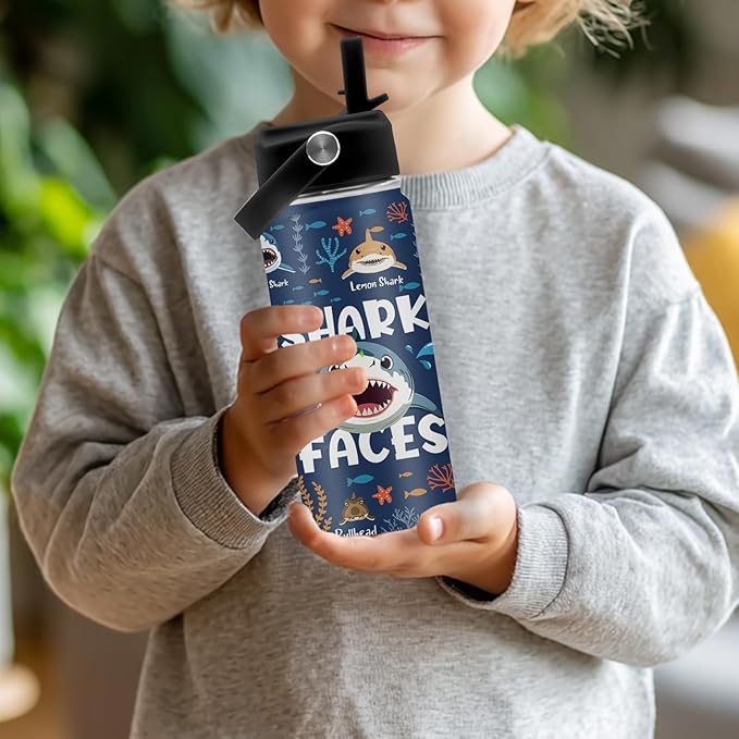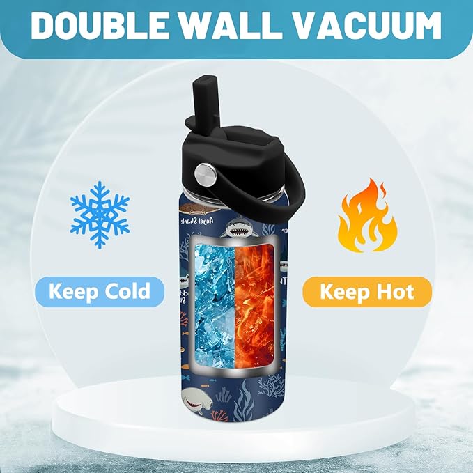 - Premium 304 Stainless Steel: Cute shark water bottle is made of high-quality 304 stainless steel for long-lasting durability. The ocean animal water bottle is perfect gift for birthday, Christmas