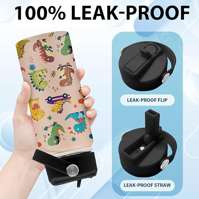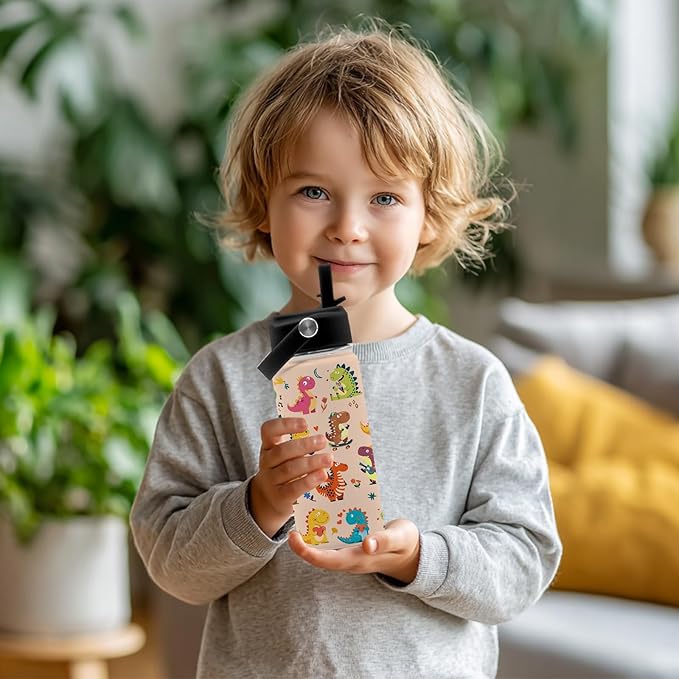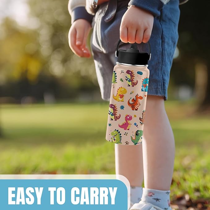 16 oz Water Bottle with Straw Lid, Stainless Steel Insulated Tumbler, Cute Dinosaurs Water Bottles for Birthday Christmas, Dinosaurs Lovers Gifts