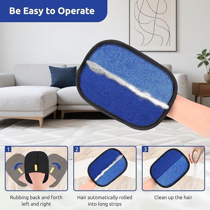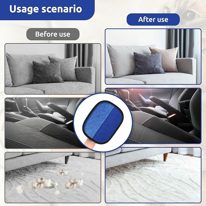 - Dual-Action Cleaning: The pet hair removal gloves have a special brush design that easily removes both pet hair and dirt from fabric surfaces, allowing for comfortable, multi-angle use on furniture, clothing, and car seats