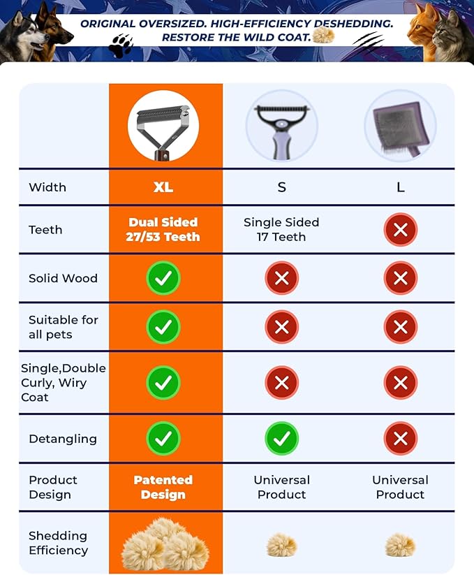 - ⏰【Quick and Efficient Grooming】Save time with our versatile grooming tool. The dual-sided design features a wide-tooth side for tackling tough mats and a fine-tooth side for deshedding and thinning, making grooming faster and easier.