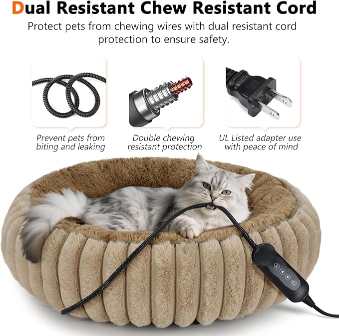INVENHO Heated Cat Beds for Indoor Cats and Small Dogs, 20" Cozy Donut Heated Pet Bed with Timer & Temp Adjustable, Removable Waterproof Electric Warming Bed for Indoor Cat