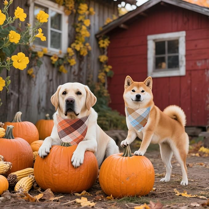 - 4 Pack Plaid Dog Bandanas: Stylish plaid patterns in seasonal color, The orange plaid suits for autumn, Halloween, and Thanksgiving, while the red green plaid for Christmas and winter, Timeless design meets holiday spirit, never out of style for daily looks or festive moments.