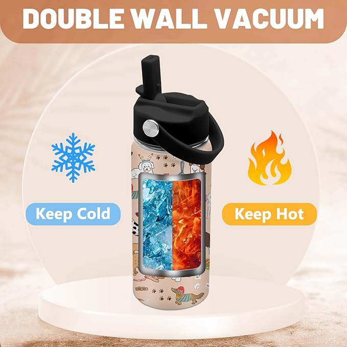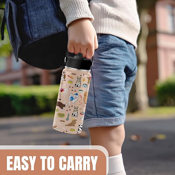 Dog Lovers Gifts, 16 oz Water Bottle with Straw Lid, Stainless Steel Insulated Tumbler, Cute Dogs Water Bottles Gifts for Birthday Christmas