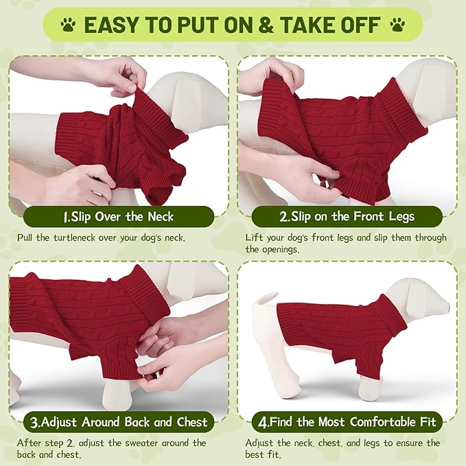 - Classic and Cute Design: Featuring a turtleneck and cable knit construction, this solid-colored sweater showcases a charming and classic knit texture. Ribbed cuffs and hem complete the look, making it stylish and comfortable for both male and female dogs.