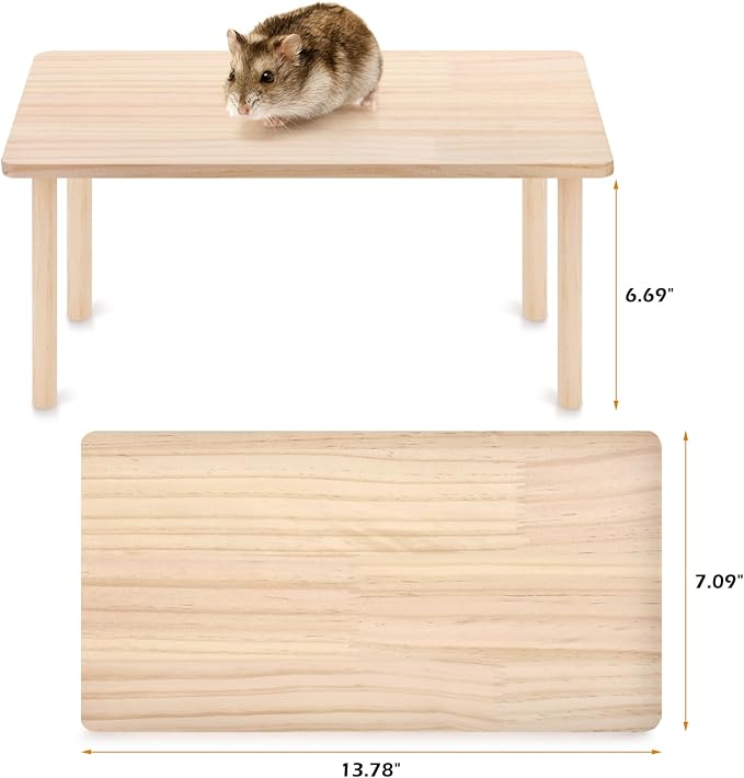 - Safe Natural Wood Construction Crafted entirely from natural wood, this hamster platform ensures your pet's safety. Every corner and surface is thoroughly sanded smooth to eliminate potential hazards. The thickened, high-quality wood makes the standing platform extra sturdy, perfect for hamsters, hedgehogs, mice, and similar small animals.