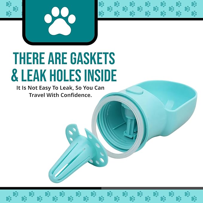 - Leak-Proof Design – Say goodbye to soaked bags! The one-button lock and silicone seal prevent leaks, making it the perfect no-mess dog hiking water bottle or puppy water bottle for your car or gear bag.