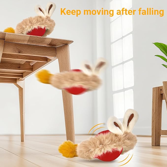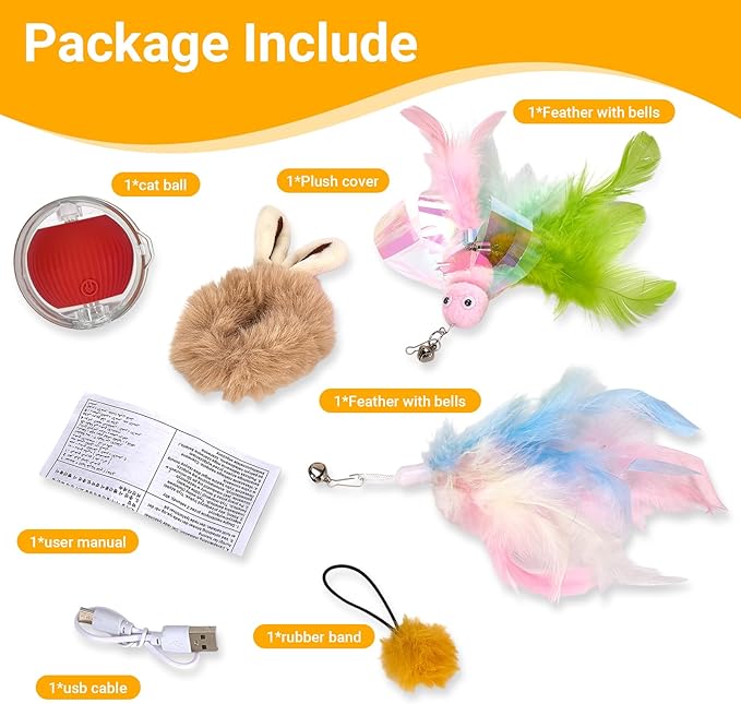 - Interesting Tail Accessory:The cat toy provides multiple motion states and erratic movements. The elastic tail accessory and the ball move quickly together, captivating the cat's attention and fascinating it, driving cats crazy. It can effectively arouse the cat's hunting instinct, allowing the cat to expend its energy and preventing boredom. The package includes a plush cover, an elastic band, and two bell-equipped feathers for easy replacement.