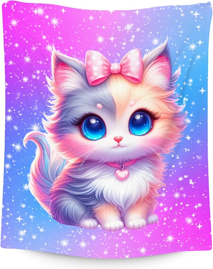 Girls Blanket Gifts - Blanket with Cat for Cat Lovers - Comfy Cozy Flannel Throws for Couch, Living Room 50"x60"