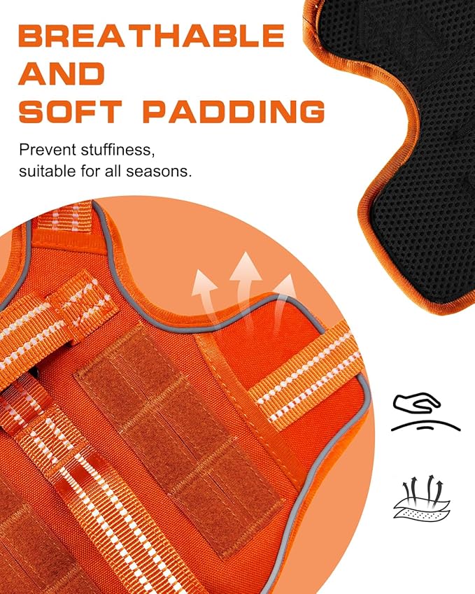- Easy Control: The front metal leash ring is designed for no-pull control, making it perfect for training or dogs that frequently pull, while the rear ring is ideal for leisurely walks, jogging, or hiking. The dog harness features horizontal and vertical nylon handles for easy grip on your dog.