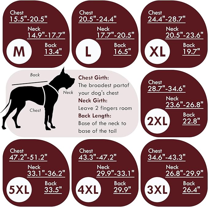 - Size 2XL: Chest Girth 35.3in/90cm, Neck Girth 22.8in/58cm, Back Length 22.8in/58cm. The large dog winter jacket is suitable for Pitbull,Weimaraner, Greyhound, Boxer, Border Collie. Please check our size chart before ordering