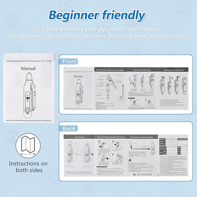 - ๐๐๐ฏ๐ ๐จ๐ง ๐๐๐ญ ๐๐ซ๐จ๐จ๐ฆ๐ข๐ง๐ ๐๐จ๐ฌ๐ญ๐ฌ๏ผSay goodbye to the high costs of professional pet grooming! Our 2-in-1 Pet Nail Clipper & Nail Grinder lets you trim and file your furry friendโs nails with professional-grade results right at homeโall without the stressful trips or sky-high salon prices. Keep your petโs paws perfectly groomed while saving time and money with this easy, all-in-one tool.
