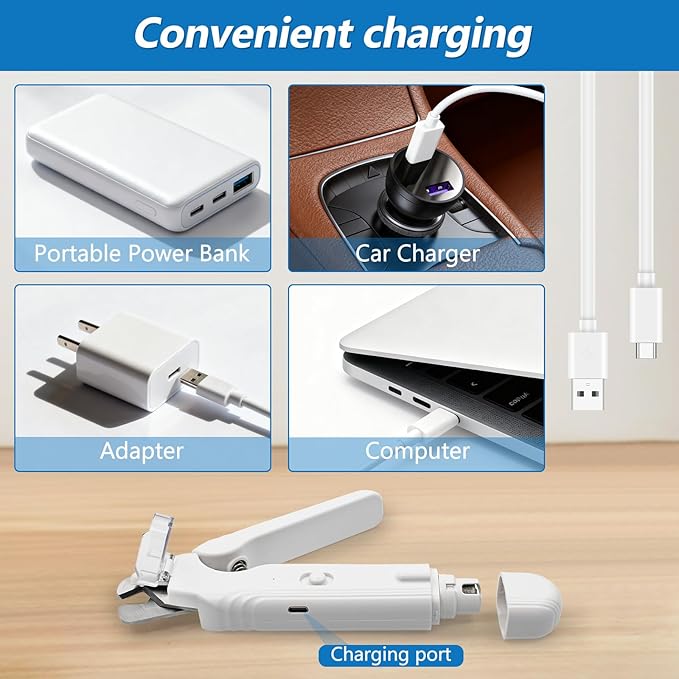 - ๐๐๐๐ ๐๐ซ๐ข๐ฆ๐ฆ๐ข๐ง๐ ๐ฐ๐ข๐ญ๐ก ๐๐๐๏ผ2 built-in LED lights illuminate the nail to help you clearly spot the quick, allowing for precise cuts that prevent pain and bleeding. Always maintain a 3mm safety margin from the quick to avoid injury. Please note that the LED feature is less effective on dark or black nails.