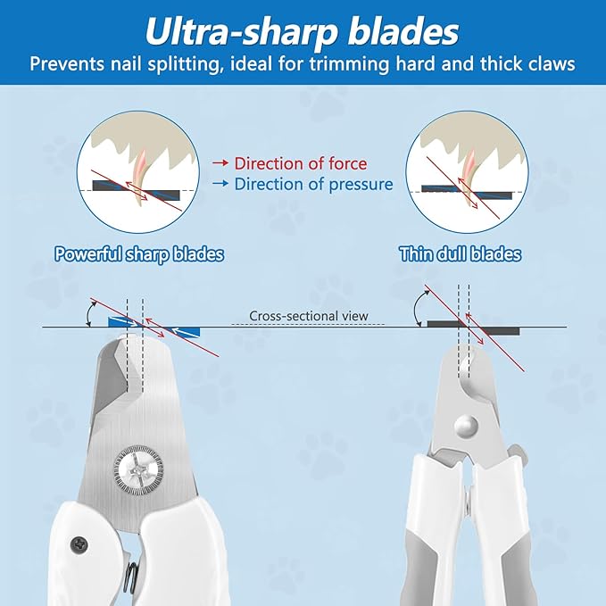 - ๐๐๐ฌ๐ฒ ๐ญ๐จ ๐๐ฌ๐๏ผEven if itโs your first time trimming your petโs nails,our dog nail clippers make nail trimming a simple and stress-free experience. A detailed instruction guide is included to walk you through the entire process, and the ergonomic, non-slip handle is curved to fit comfortably in your palm for fatigue-free use.