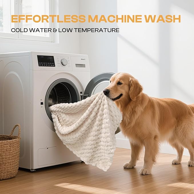 - 【Long-Lasting & Effortless Care】The tight stitching can withstand pet scratching and frequent use. This dog throw blanket is completely machine washable in cold water, can be dried on a low-temperature, and retain its plush softness wash after wash. Advanced color-lock technology prevents fading, ensuring vibrant jacquard patterns stay beautiful. Enjoy cozy moments longer with your pet, minimizing replacements.