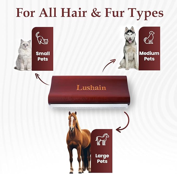 - REMOVE SHEDDING HAIR IN MINUTES – The Lushain deshedding tool quickly eliminates excess fur, dirt, and hair with just a few strokes. Ideal not only for grooming pets but also for removing stubborn hair from carpets, furniture, and bedding.