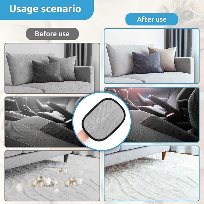 - Dual-Action Cleaning: The pet hair removal gloves combine static electricity with a special brush design to effortlessly remove both pet hair and dirt from fabric surfaces, allowing for comfortable, multi-angle use on furniture, clothing, and car seats