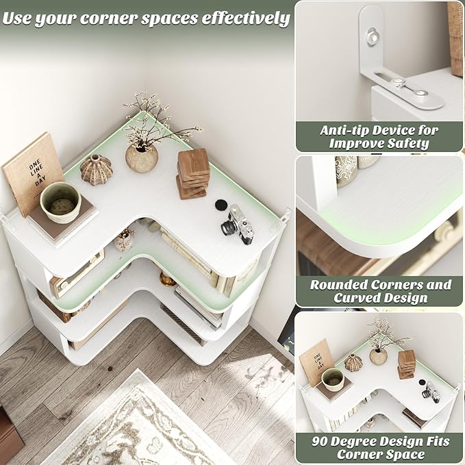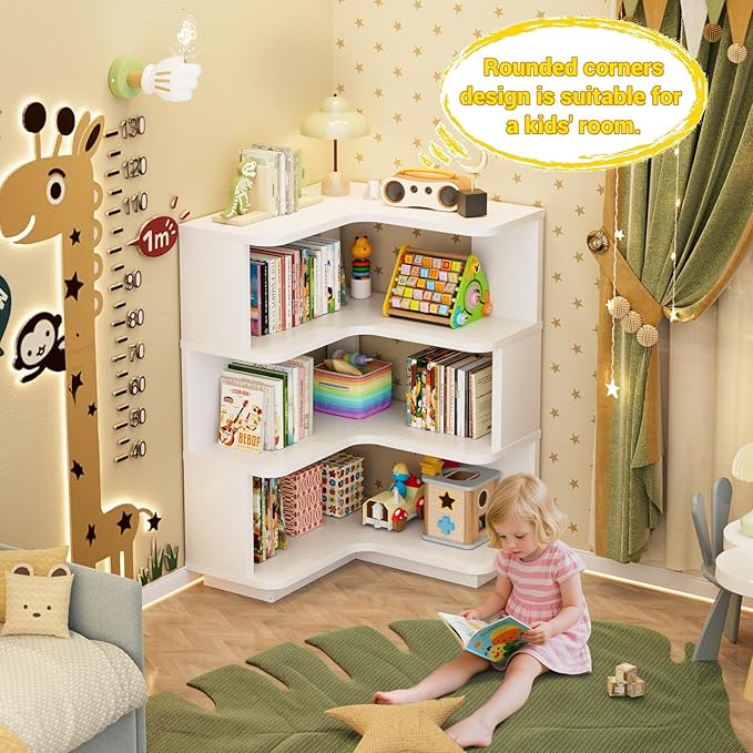 - Safe & Stylish Construction - Rounded Corners and Bookend Design - Every edge is smoothly curved to prevent bumps and bruises(no sharp corners), making it perfect for nurseries or playrooms. Each shelf includes a built-in bookend at one side to prevent items from slipping. Combines modern aesthetics with practical protection