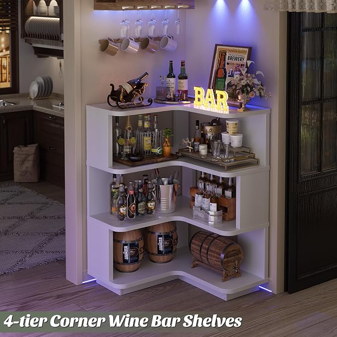 Armocity Corner Book Shelf - 4 Tier Corner Bookshelf Etagere Bookcase with Baffle, Freestanding L Shaped Display Shelf Stand for Home Office, Living Room, Bedroom, Kitchen, White
