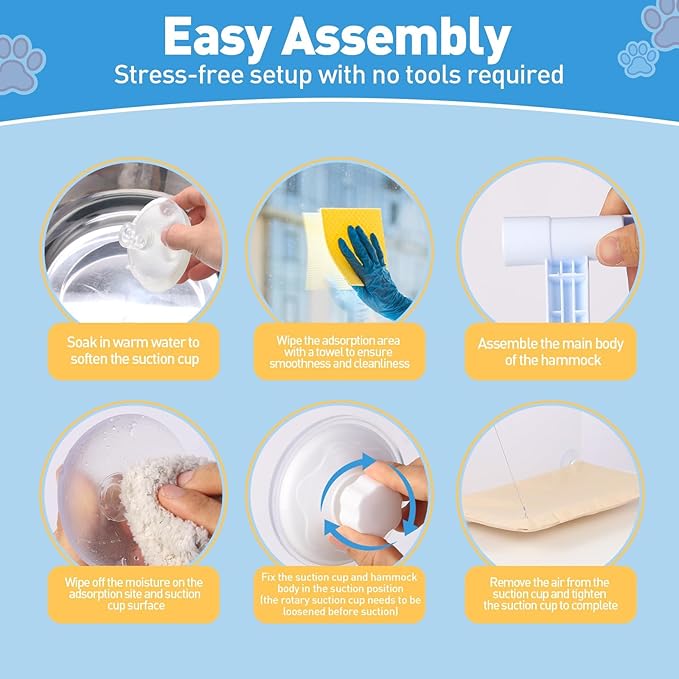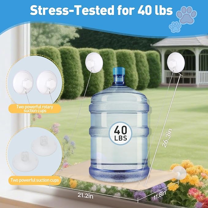 - Sturdy and Strong Suction: Equipped with powerful suction cups that firmly adhere to glass, capable of bearing a weight of up to 20kg. It provides cats with a stable sense of security, allowing them to rest at ease without wobbling.(If you encounter any installation issues, you can refer to the installation videos in the store.)