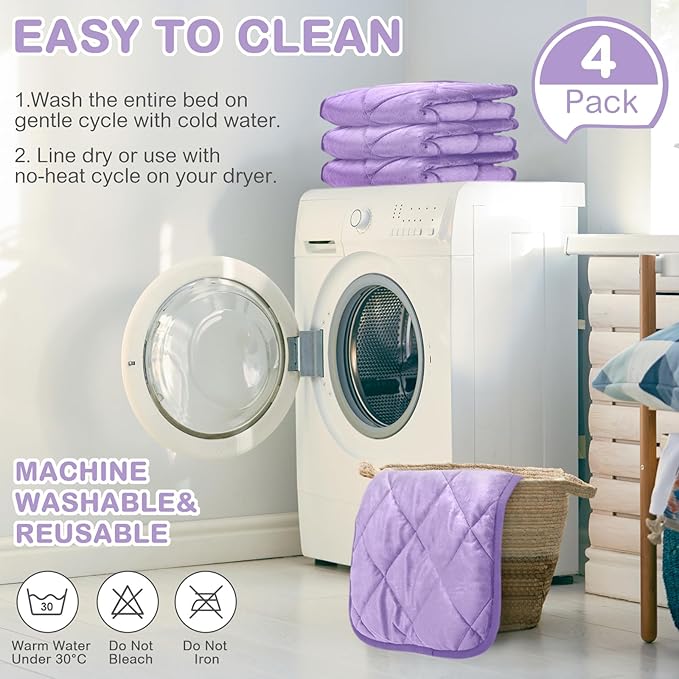 4 Pack Self Heating Cat Pad Self Warming Dog Mat Reflects Body Heat Extra Warm Thermal Pet Pad Washable Dog Cat Bed Crate Bed Mat Blanket(16 x 20 Inch,Purple)