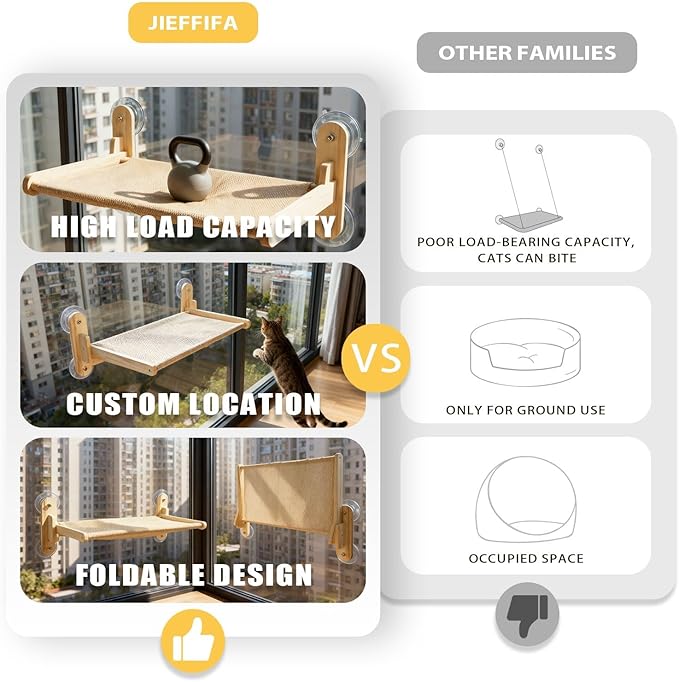 - Ultra-Secure Suction Cups, Tested & Trusted: Features upgraded suction cups that underwent a rigorous, providing a safe and stable lounging space for your medium and small cats
