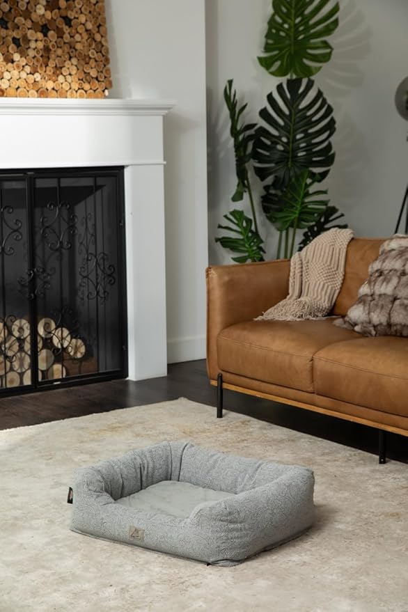 Furry's Paradise Cuddler Waterproof Bolster Pet Bed with Recycled Fibers and Non-Slip Bottom. (Gray Paisley, Small)
