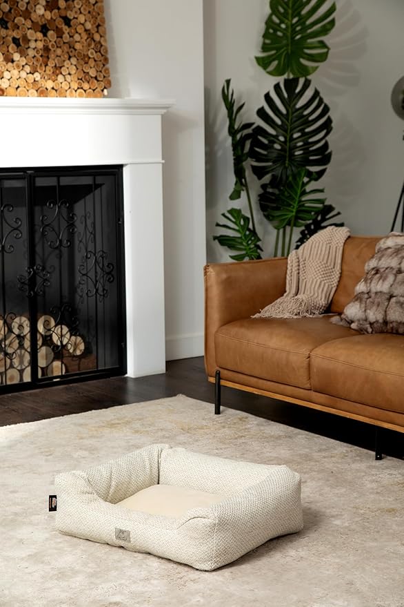 Furry's Paradise Cuddler Waterproof Bolster Pet Bed with Recycled Fibers and Non-Slip Bottom. (Beige Weave, Small)