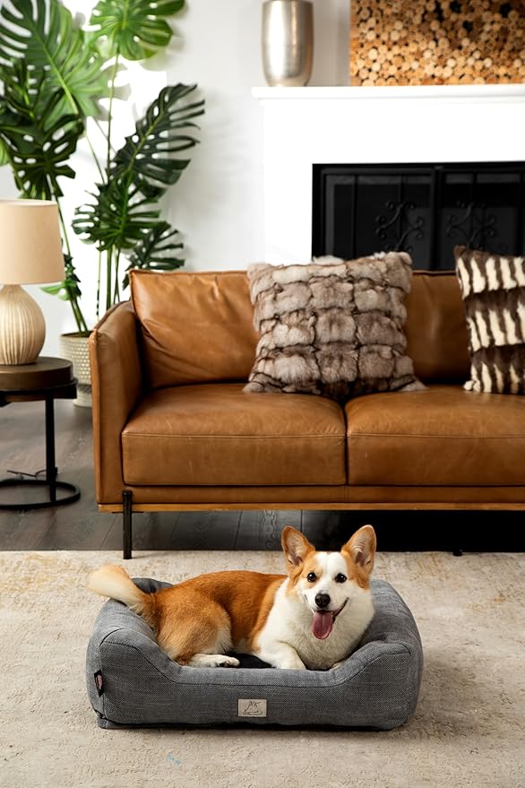 Furry's Paradise Cuddler Waterproof Bolster Pet Bed with Recycled Fibers and Non-Slip Bottom. (Dark Gray, Small)