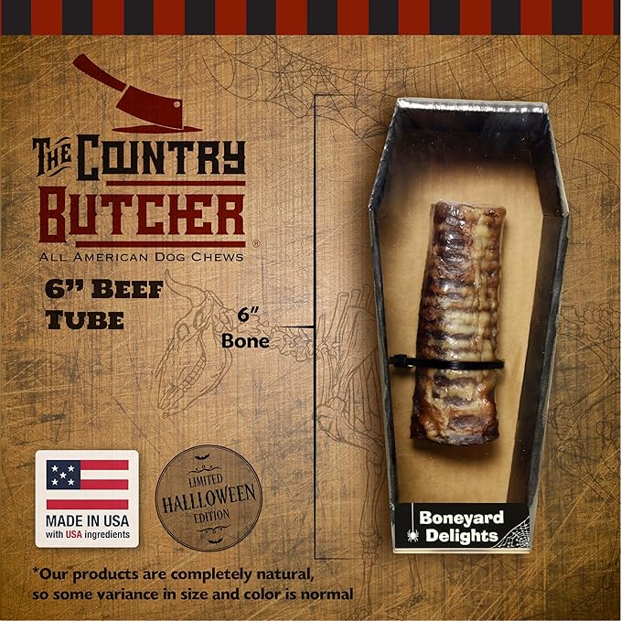 - HAUNTINGLY NATURAL & NOURISHING: Sink your fangs into The Country Butcher’s 6″ Beef Trachea—oven-baked in our haunted lair for a bone-chillingly crunchy chew that’ll have tails howling all night!