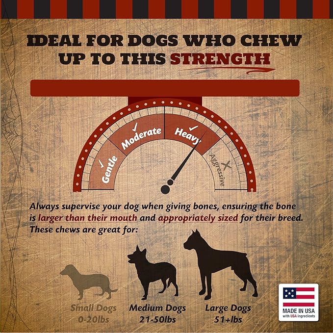- FANG-TASTIC CHEWING FUN: Single-ingredient beef bones deliver hours of spooky, tail-wagging entertainment. Always play the guardian—supervise your pup and choose chews larger than their mouth for a safe Halloween night!