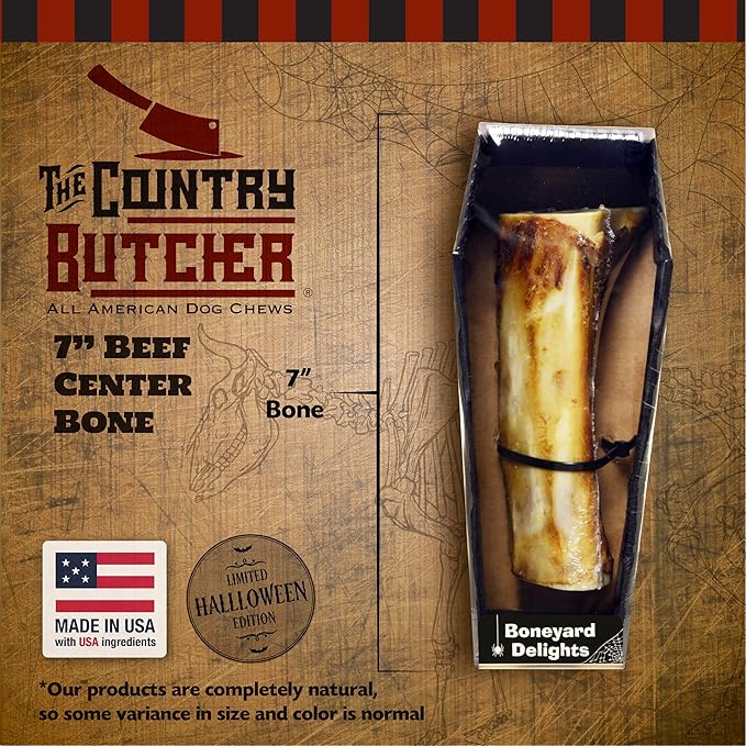 - HAUNTINGLY NATURAL & NOURISHING: Summon this 7″ hickory-smoked marrow bone trimmed with meaty morsels, perfect for large breeds and power chewers. Each bone varies in marrow—some brim with ghoulishly rich goodness, others hide tasty surprises.