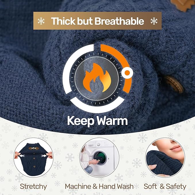 WOYYHO Dog Sweater for Medium Dogs, Cable Knit Pullover with Cow Horn Button, Warm Round Neck Winter Knitted Clothes for Puppy Dachshund French Bulldog, Navy Blue XL