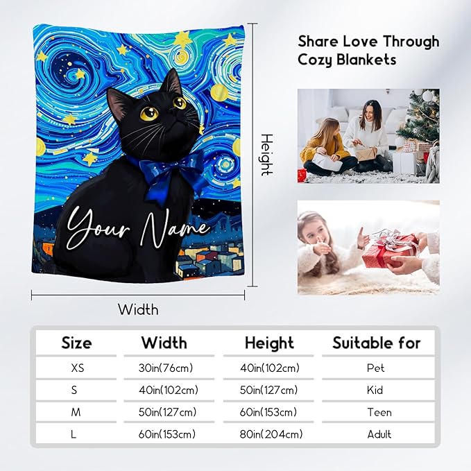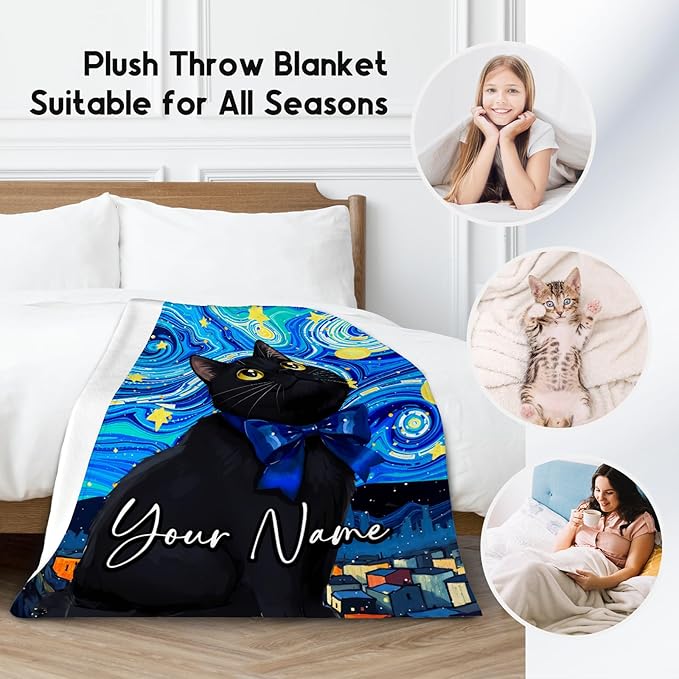 Kids Blanket - Custom Cat Blankets for Cat Lovers - Lightweight Flannel Soft Cute Throws Gifts for Room Decor/Bed/Sofa - 4 Sizes