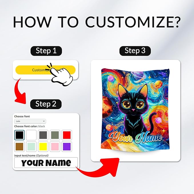 Cat Blankets for Cat Lovers - Personalized Girls Blanket for Toddler/Kids/Women - Lightweight Planet Throws Gifts for Office Couch, Room