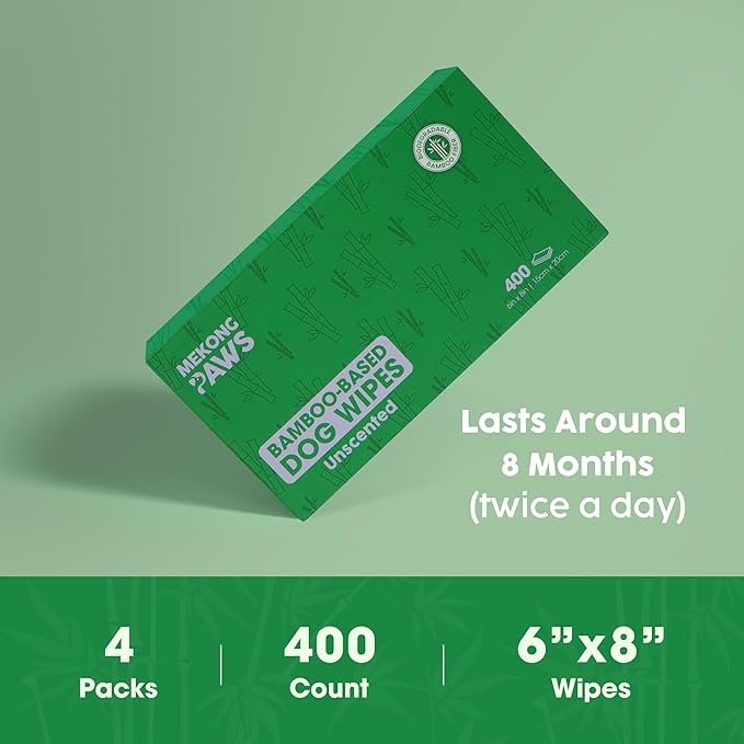 Pet Grooming Wipes - Unscented - Natural & Organic Bamboo Base - Freshening Wipes for Dog & Cat - Skin-Friendly & Gentle - Thick & Durable for Paws, Coat & Bum Cleansing - 400 Count